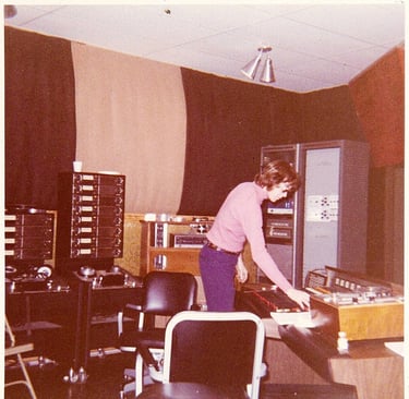 This photo is from a studio built in Atlanta decades ago. The equipment came from James Brown's Augusta studio. Ampex 8 - 4 - 2 track recorders and a Quad-Eight mixing console.